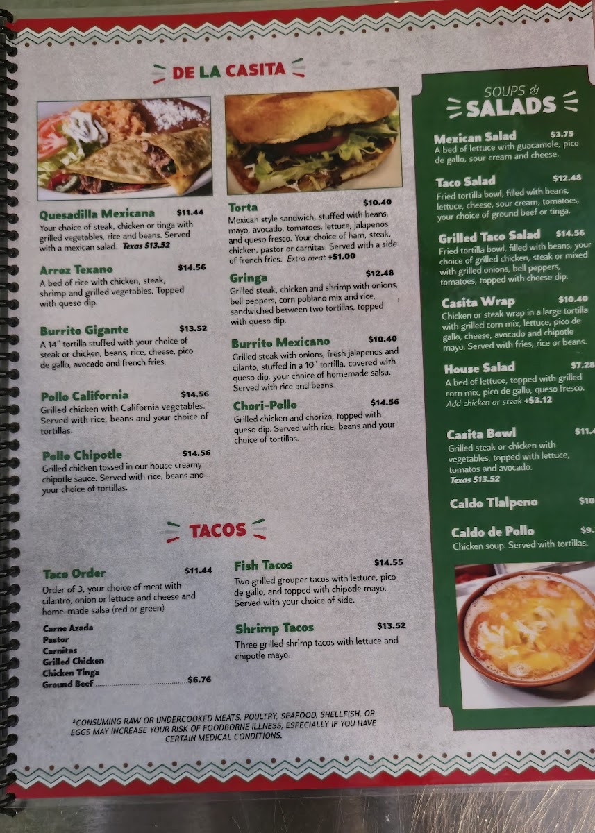 Step into La Casita Cafe, where every dish is crafted to bring the vibrant flavors of home-cooked comfort food straight to your table. The La Casita Cafe Menu offers a variety of mouthwatering options, from classic favorites to bold new creations that will leave your taste buds dancing. Whether you're craving hearty Mexican classics or something with a twist, this menu has something for everyone. Enjoy the warmth of freshly made tortillas, sizzling fajitas, and flavorful tacos, all prepared with the finest ingredients and a lot of love. Each dish is designed to provide a satisfying, fulfilling meal, perfect for a casual lunch or a cozy dinner with friends and family.